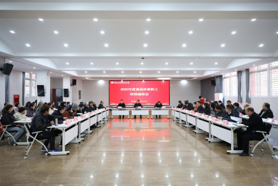 1月13日下午,我校2025年度离退休教职工校情通报会在5101报告厅举行,校党委书记王晓、工会主席陈海峰、校党委常委、党政办主任王文山出席会议。学校相关职能部门负责人、各二级学院党委书记、离退休工作处全体工作人员及离退休教职工代表共计60余人参加会议。会议由陈海峰主持。