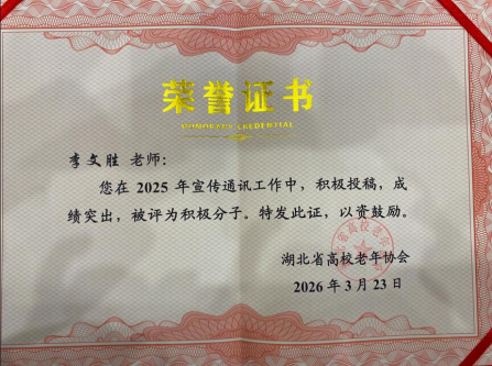 为全面总结全省高校老年协会2025年学习宣传工作经验,不断提升高校老协宣传通讯服务综合能力,3月23至25日,湖北省高校老年协会宣传工作总结表彰暨宣传通讯员培训会议在宜昌市五峰土家族自治县五峰耕读教育大学堂顺利召开。我校老年协会在2025年的宣传工作中取得了可喜的成绩,获评宣传通讯工作优秀组织单位,李文胜老师获评宣传通讯工作积极分子。